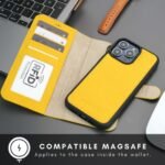 This wallet phone case protects against scratches and shocks from inadvertent drops. It is crafted with fine full-grain leather with exquisite attention to detail. Its attractive appearance and remarkable durability set it apart! With enhanced data protection, comfortable viewing, and smooth, continuous wireless charging, the integrated kickstand, RFID blocking technology, and detachable back cover provide a superior user experience.