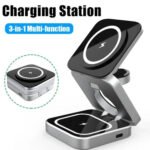 Fast Wireless Charging Station: This wireless charging station is tailored to work seamlessly with Apple MagSafe chargers. When paired with a QC3.0 quick charger (not provided), it can fully recharge your device in just 2-3 hours. It’s a versatile 3-in-one charger compatible with Apple Watch, AirPods, and a range of iPhone models including the 15, 14, 13, 13 Pro, 13 Pro Max, 12, 12 Pro, 12 Pro Max, 11, and 11 Pro Max, as well as XS.