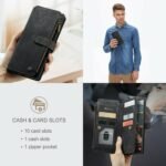 Premium Vegan leather Wallet Case for iPhone. This wallet case comes with multi card slots and inner compartment for cash and coins.