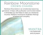 Moonstone is most commonly associated with the Heart, Throat, Third Eye and Crown Chakras.